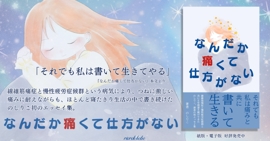 2018年9月から、のしりことしてエッセイをnoteで書き始める。2024年12月1日に文学フリマ東京で初のエッセイ集『なんだか痛くて仕方がない』を刊行。現在は、BOOTHとnoteで執筆を中心に活動中。著書に『共病ダイアリー』『恋愛だけがすべてじゃない』など(共に文学フリマで販売)