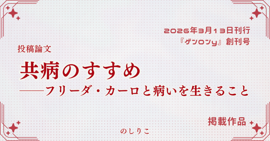 2026年、「共病のすすめ──フリーダ・カーロと病いを生きること」が、『ゲンロンy』創刊号の投稿論文に掲載。