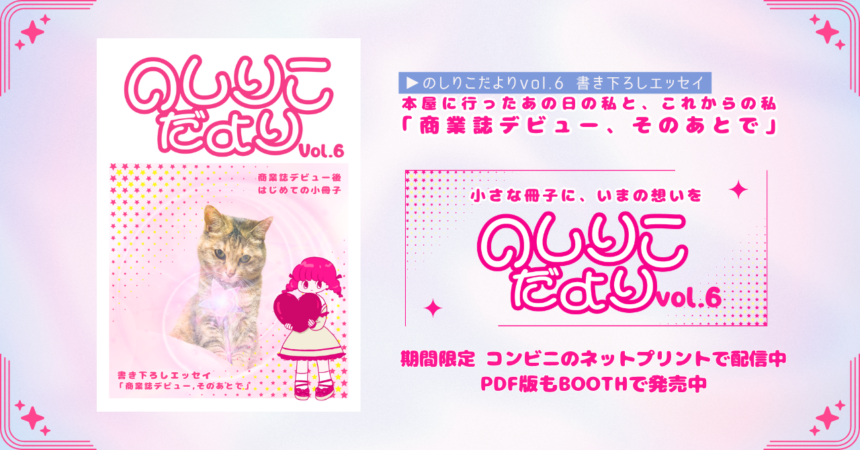雑誌掲載やエッセイ+近況をまとめた小冊子 のしりこだよりなど(PDF販売あり)